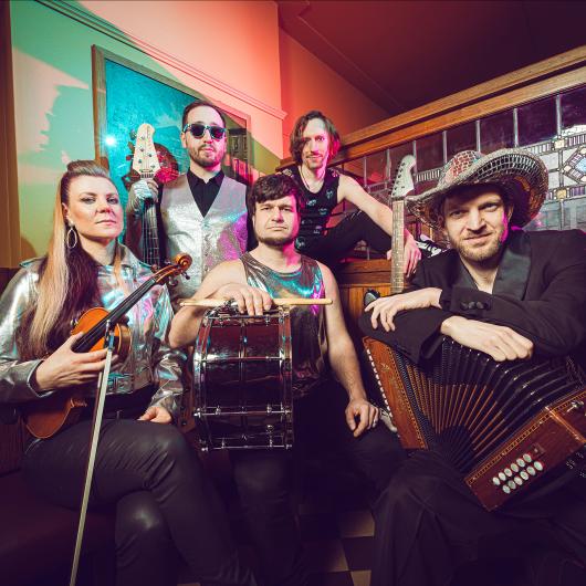 Hold on to your tri-corn hats and be prepared to stamp your wooden legs – Blackbeard’s Tea Party are in town. Sea-shanties will be given a bombastic rock edge, and folk instrumentals will become late-night floor-fillers when this raucous bunch of reprobates hit the stage. They have dirt under their fingernails and a twinkle in their eyes, and you can expect fantastic musicianship, playful choreography and an unstoppable urge to move your body. Drums, electric guitars, fiddle, melodeon and 4-part vocal harmonies combine to create music that is drenched in tradition, but filtered through a kaleidoscope of modern rock and pop. Established as the go-to band for late-night folkin’ shenanigans, Blackbeard’s Tea Party have played memorable sets at Glastonbury, Cambridge Folk Festival, Fairport’s Cropredy Convention, The Rainforest World Music Festival in Borneo and many more. |